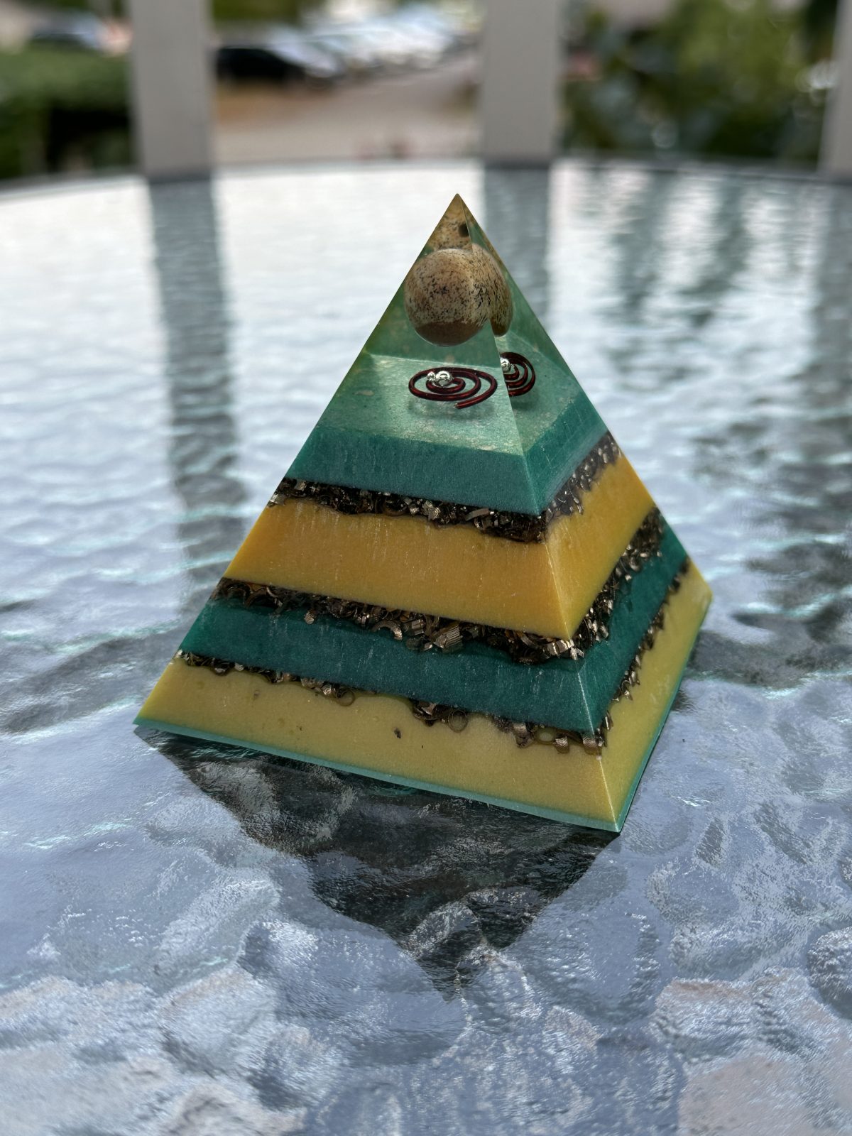 The orgone pyramid works as an energy filter, neutralizing electromagnetic radiation (EMF) and cleansing the space of negative energy. With jasper at its core, the pyramid creates a strong protective field that promotes a sense of security and harmony—whether at home or in the workplace.