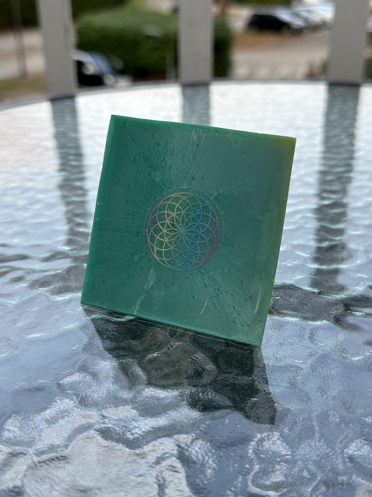 Orgone Pyramid with Picture Jasper and the Lotus of Life Symbol
