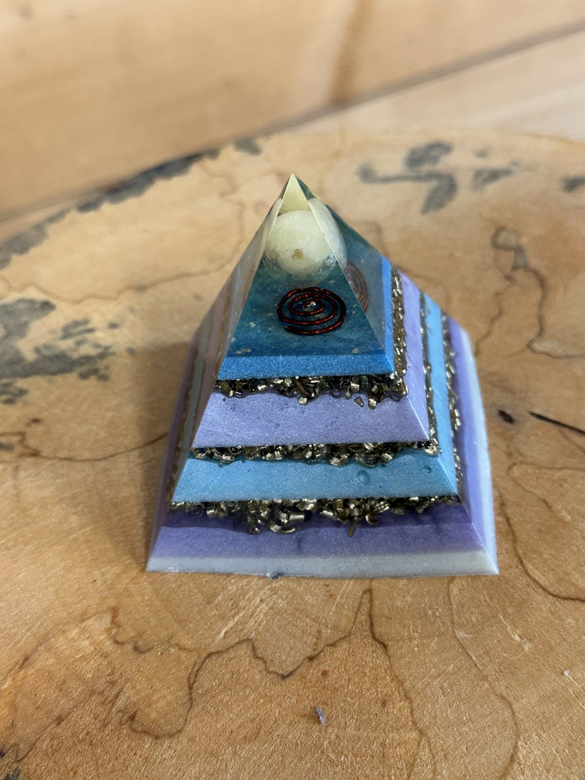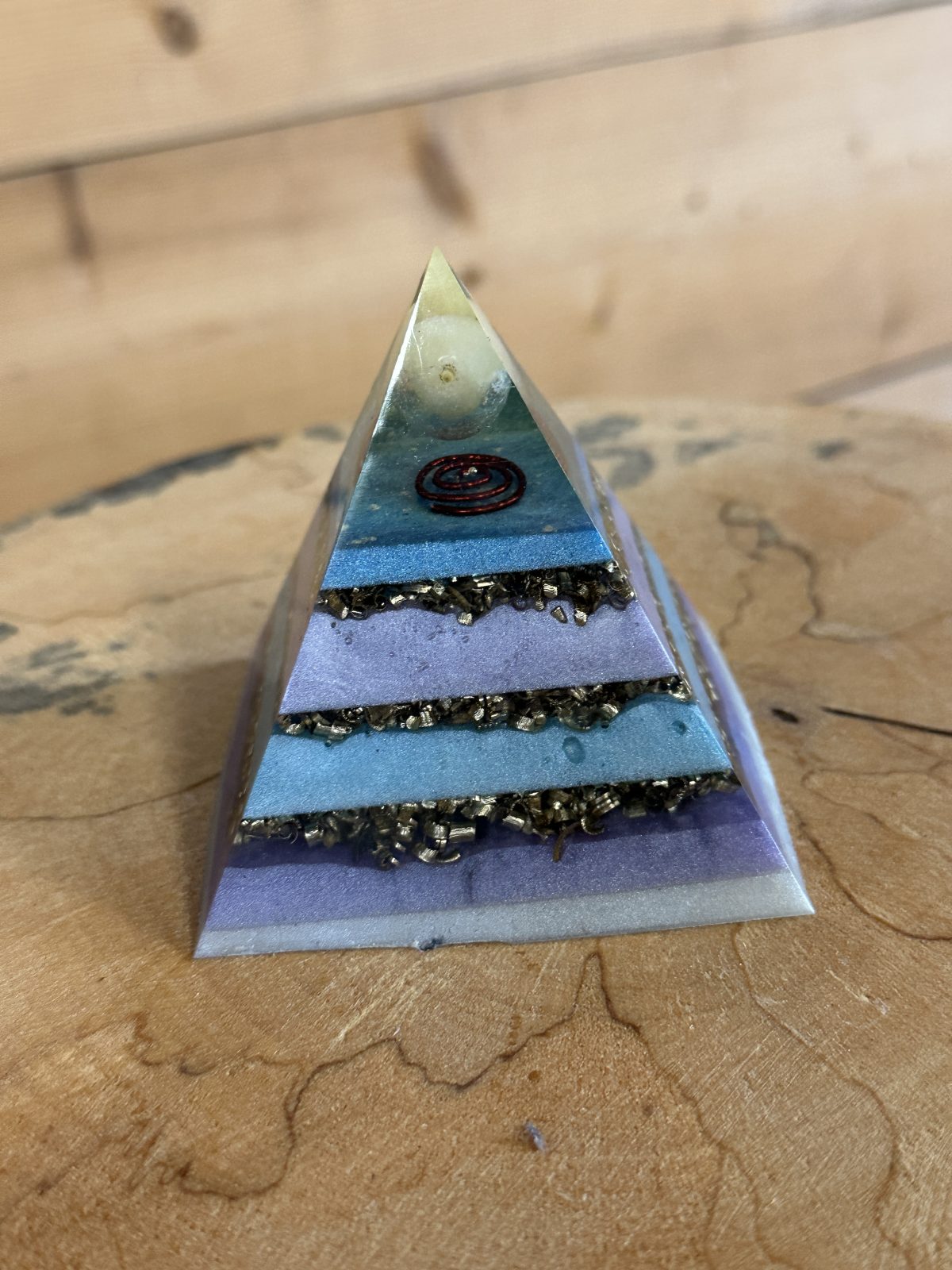 This orgone pyramid acts as a natural filter, neutralizing electromagnetic radiation (EMF) and negative vibrations in the space. It helps create a pleasant, harmonious environment that supports focus, well-being, and positive energy.
